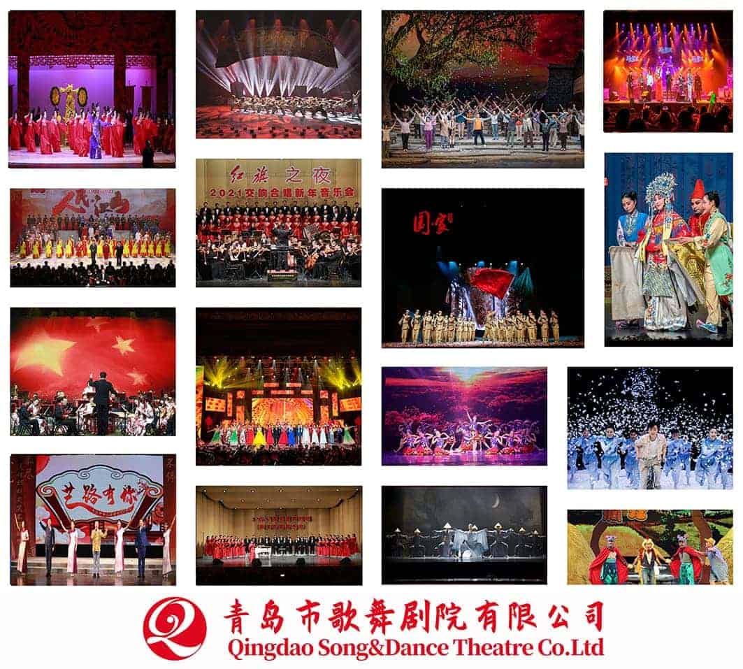近年來(lái),劇院更加注重藝術(shù)創(chuàng)作生產(chǎn),成功創(chuàng)作演出了大型舞蹈詩(shī)《大海夢(mèng)幻》、大型歌舞晚會(huì)《蔚藍(lán)青島》、大型民族歌舞《龍飛鳳舞》、方言劇《劈柴院傳奇》、舞劇《東廂記》《紅高梁》《法顯》、大型黨性教育音樂(lè)情景劇《誓言》、大型音樂(lè)舞蹈史詩(shī)《人民·江山》、民族歌劇《馬向陽(yáng)下鄉(xiāng)記》《國(guó)·家》、呂劇《百川東到海》等。圍繞“惠民院線(xiàn)”這一島城演出品牌,創(chuàng)作演出了《炫舞青春》舞蹈專(zhuān)場(chǎng)晚會(huì)、《看上去很美》現(xiàn)代舞蹈專(zhuān)場(chǎng)晚會(huì)、當(dāng)代舞劇《星河》、《奧斯卡金曲》《宮崎駿動(dòng)漫視聽(tīng)》《黎明四季》《歷史的回顧》交響音樂(lè)會(huì)、交響組曲《五月的風(fēng)》、《征程》流行管弦音樂(lè)會(huì)、《搗蛋鬼維克多》系列交響兒童劇、《青島市新春民族音樂(lè)會(huì)》《中國(guó)夢(mèng)》《國(guó)風(fēng)雅韻-傳統(tǒng)民族樂(lè)器獨(dú)奏作品》、《歷史的豐碑》民族音樂(lè)會(huì)、《綻放》、《古典也時(shí)尚》現(xiàn)代民族音樂(lè)會(huì)、《鄧麗君金曲》演唱會(huì)、《致青春》音樂(lè)情景劇、《向共和國(guó)致敬》經(jīng)典歌劇片段主題晚會(huì)、《永恒的旗幟》情景歌會(huì)、“慢慢喜歡你”不插電live流行音樂(lè)會(huì)、《墻頭記》《借年》《小姑賢》《姊妹易嫁》等傳統(tǒng)呂劇、《孝感天下》《最美青島人》《笑談曲苑》《春暖花開(kāi)》《歡歌笑語(yǔ)頌百年》等曲藝專(zhuān)場(chǎng)晚會(huì)、《大懶貓》《奔跑吧,公主》《三個(gè)丑家伙》《因?yàn)閻?ài)》《大俠慢吞吞》《年獸傳說(shuō)》等原創(chuàng)兒童劇以及《長(zhǎng)征組歌》《中外名曲》《頌歌獻(xiàn)給黨》合唱音樂(lè)會(huì)等數(shù)十臺(tái)演出,演出票房爆滿(mǎn),觀眾好評(píng)如潮。期間,劇院多次參與組織、策劃、承辦省、市級(jí)各類(lèi)大型節(jié)慶活動(dòng),成功舉辦了歷屆青島國(guó)際啤酒節(jié)、海洋節(jié)、菏澤國(guó)際牡丹節(jié)、2008奧帆賽開(kāi)幕式文藝演出、上合峰會(huì)大型文藝演出、多次應(yīng)邀參加央視春節(jié)、元旦、國(guó)慶等大型晚會(huì)錄制、創(chuàng)排演出慶祝改革開(kāi)放40周年大型情景歌舞劇《筑夢(mèng)》、2019年參加慶祝人民海軍成立70周年演出等大型文藝演出等;多次隨市領(lǐng)導(dǎo)出訪(fǎng)徳國(guó)、英國(guó)、韓國(guó)、日本、美國(guó)、俄羅斯、澳大利亞、新加坡、馬來(lái)西亞、泰國(guó)、贊比亞、坦桑尼亞、埃塞俄比亞、斯里蘭卡等國(guó)家進(jìn)行文化交流演出。